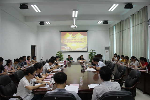 2017年6月2日上午,全区高校共青团工作第三督导组到beat365官网开展督导工作,督导组成员自治区高校团工委副书记、广西大学校团委书记左向蕾,自治区高校团工委委员、广西财经学院校团委书记蒲青江在仙葫校区大学生活动中心317会议室听取beat365官网汇报工作并召开座谈会。学校全体专兼职团干、团员青年代表参加了本次会议。会议由校团委书记王春花主持。