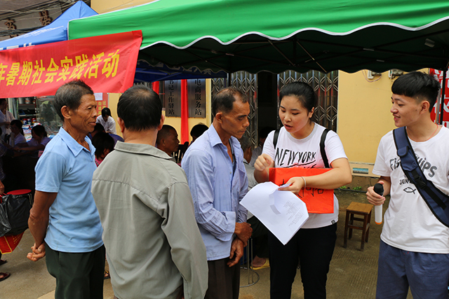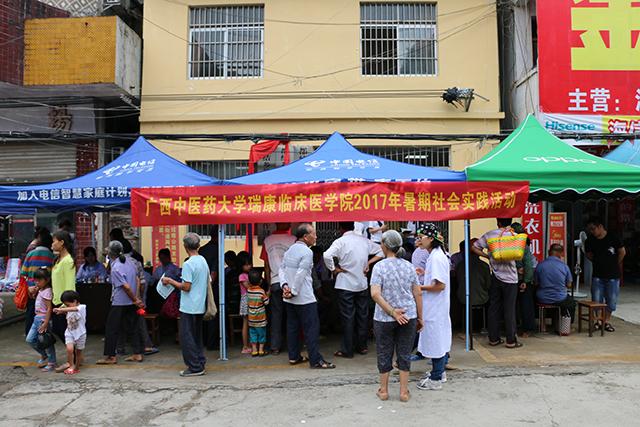 2017年7月17日,我院围绕“青春喜迎十九大,不忘初心跟党走”的主题,结合自身专业特点,由大学生志愿者组成暑期社会实践队,在瑞康医院党委副书记、纪委书记黄建民及教务学生党总支、教务学生部、团委、社会工作暨志愿服务工作部老师的带领下,赴隆安县都结乡开展了以“关于中老年人及时就诊意识程度的调研”为课题的暑期社会实践活动。本次活动还邀请了骨科、呼吸内科、心血管内科、肝病内科、胃肠肛门外科的医生为当地群众义诊,同时还为当地留守儿童举办急救知识大讲堂。
