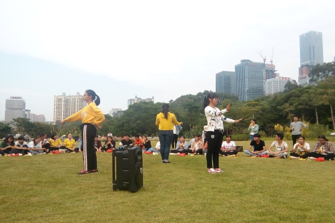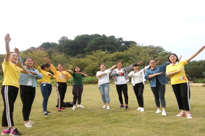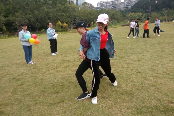 中午志愿者们兴高采烈地从仙葫校区出发,到达石门森林公园的指定地点后,志愿者们积极地布置会场。素质拓展活动内容分为小组游戏和经历分享两个环节。在活动过程中,志愿者们以小组形式进行了纸杯传水、心心相印和7人8足等团队合作游戏。组员们相互讨论游戏的新方案,给游戏增添了不少乐趣。随后在经历分享环节,志愿者们十分踊跃地用歌唱献艺或手语表演的方式分享着亲身体验,令人感触颇多。活动的现场,大家兴致昂然,气氛融恰。傍晚,大家伴着夕阳的余晖,意犹未尽地乘车返回校园。