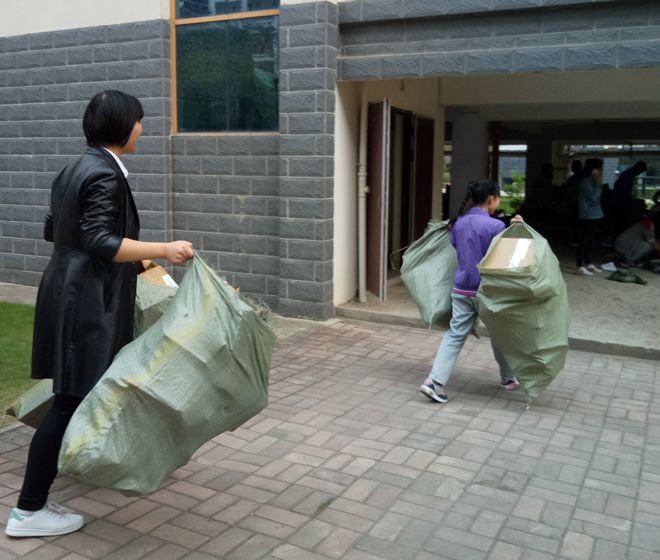 当天下午,志愿者们,进行分组并强调注意事项,礼貌敲每一扇蓝爱宿舍门,礼貌询问宿舍成员是否有废品可以回收,遇到没有人在的宿舍,志愿者们贴心地将事先抄好的便贴贴在门口,提醒蓝爱宿舍成员已经进行本月的废品回收。活动中,志愿者虽已身心疲惫,但却马不停蹄。志愿者们不怕苦,不怕累,充满活力,一直坚持到活动最后一刻,在这辛苦中体验到不一样的快乐,夜幕降临,爱心在蔓延。