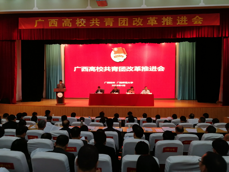 4月9日上午,全区高校共青团改革推进会在广西师范大学举行,自治区高校工委副书记覃萍、共青团广西区委副书记李晓勇参加会议并讲话,全区76所高校分管共青团工作的校领导、团委书记参加会议,会议总结了高校共青团改革工作推进情况。beat365官网党委副书记何并文代表学校做改革典型经验交流发言。