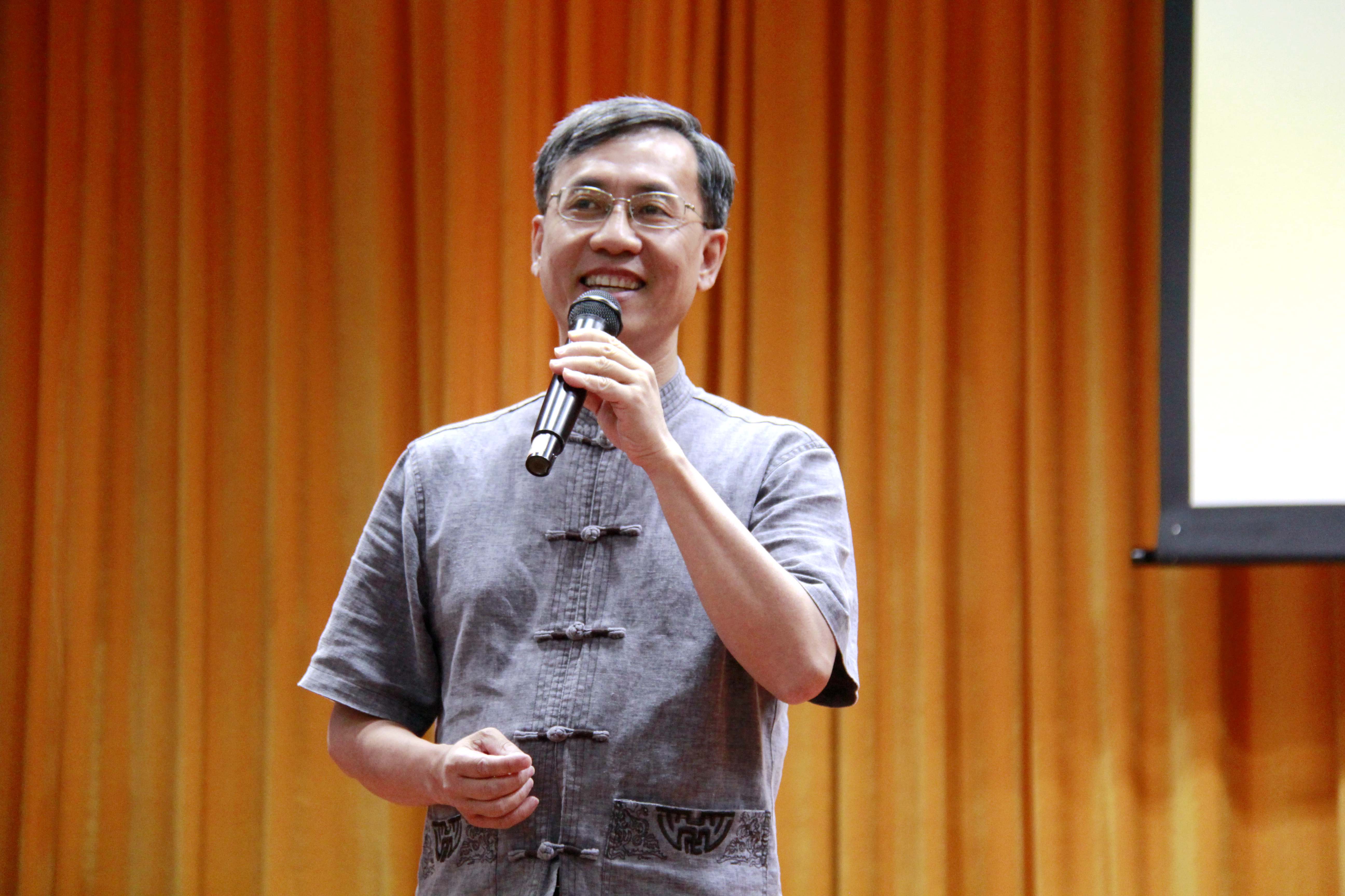 道生一,一生二,二生三,三生万物。万物负阴而抱阳,冲气以为和。2018年5月8日下午,由广西传统道德文化促进会第二届副会长王海涛老师带来自诚讲坛之一《道德经妙解》讲座在beat365官网仙葫校区小礼堂成功举办。出席嘉宾有广西中华传统道德文化促进会秘书长唐天元、beat365官网团委副书记杨删,讲座现场座无虚席。