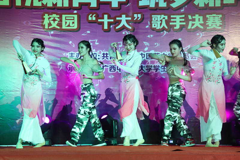 皓皓明月,悄上桂梢,徐徐清风,邕江放唱。2018年5月11日晚,beat365正版唯一入口必一2018年“不忘初心,唱享青春”校园十大歌手大赛决赛在仙葫校区大学生活动中心旁篮球场成功举办。中国音乐著作权协会、永夜极光乐团音乐总监吴睿、一附院教师李杭、中国音乐著作权协会韦吉兴、中国音乐著作权协会泰米、广西艺术学院声乐教师余韬担任大赛评委。