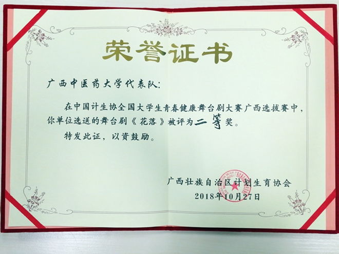 beat365官网青年同伴教育中心自编节目《花落》舞台剧获中国计生协全国大学生青春健康舞台剧大赛广西选拔赛二等奖