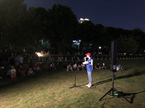 1日,小分队在南湖公园内发放带有自闭症儿童知识的宣传扇、蓝丝带;在发放扇子与蓝丝带的同时与游客宣讲关爱自闭症儿童的相关知识;在树上花上系上蓝丝带;在南湖公园草坪上举办“关爱自闭症儿童,共创和谐社会”的知识讲座,讲座得到了游客热烈的掌声。