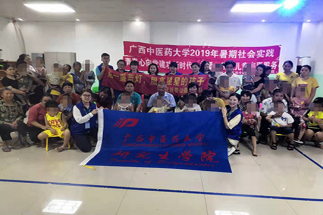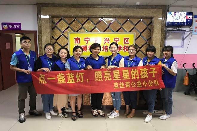 为对自闭症儿童的相关知识进行推广,加强了社会对自闭症儿童的关注和了解,2019年8月1日—2日,研究生学院蓝丝带公益小分队在南湖公园和南宁市兴宁区春暖特殊培训学校开展了“关爱自闭症儿童,共创和谐社会”为主题的暑期社会实践活动。