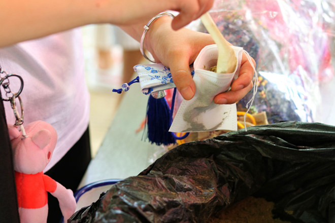 同学们亲手制作香囊