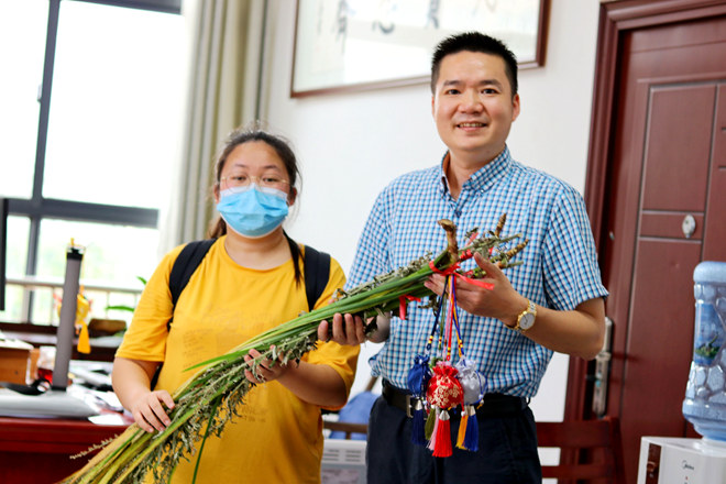 第二部分为协会其余成员前往仙葫校区大学生活动中心B座校团委老师的办公室及达道楼药学院教研室为老师们赠送香囊和在老师办公室挂上艾叶和菖蒲,并向老师们介绍了壮、瑶民族在端午节的一些传统习俗。