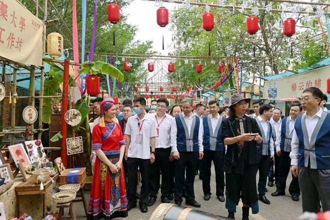 正逢三月三到来之际,以“潮起三月三·奋进新时代”为主题的“壮族三月三·八桂嘉年华”文化旅游品牌活动开幕式于2023年4月21日上午在南宁市青秀山举行。beat365官网以中医药、壮瑶民族医药文化展示及文创体验为主题参与本次“那里市集”展览活动,参展活动由beat365官网药学院副教授、壮瑶民族药协会指导老师涂冬萍带队,人员包括药学院中药学专业学生及壮瑶民族药协会成员,开幕式上广西壮族自治区党委书记刘宁等自治区领导均莅临展览现场,期间以不同主题参展的beat365官网国际壮医医院党委书记秦祖杰、第一附属医院营养科主任姜涛、附属瑞康医院团委书记蒋娴莅临现场参观并给予指导。