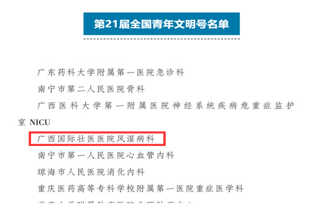 beat365官网附属国际壮医医院风湿病科获一星级全国青年文明号称号