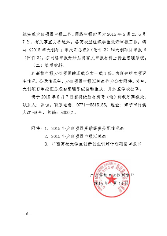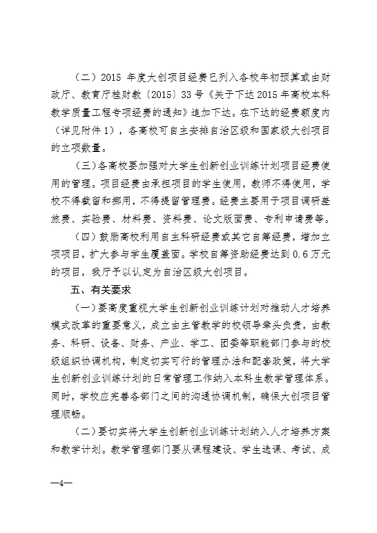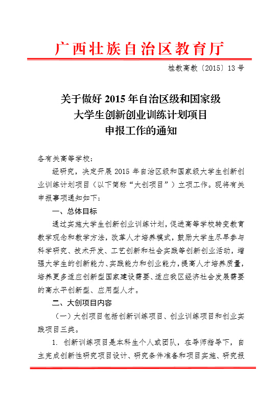 关于做好2015年自治区级和国家级大学生创新创业训练计划项目申报工作的通知
