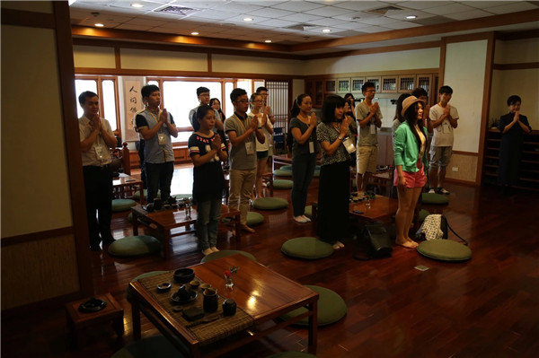 慈济的三道人文课程——茶道、花道、书道,体现天、地、人三位一体的和谐统一。尤其是静思茶道,以“感恩、尊重、爱”为理念,以四“jing”——“境教、静思、洁净、恭敬”为基本思想,茶具的摆放以及“握、绕、回、倒”等各个动作都各自包含了“平等、宽容、勇敢、礼貌”等意义。