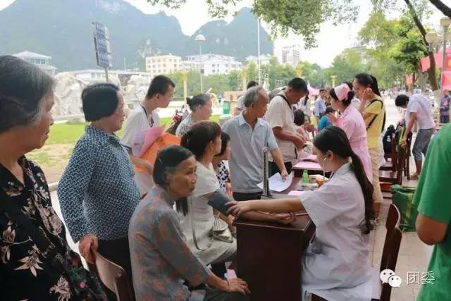 2016年7月14日至7月16日,针灸推拿学院联合人文社科学院赴罗城县、大化县开展暑期社会实践义诊与健康调查活动。针推学院潘立老师、人文学院宋南老师和渠淑洁老师参加了此次活动。7月15日上午,实践团队在人文社科学院韦院长的带领下,并得到罗城县妇幼保健院的支持与帮忙在罗城大广场开展义诊和健康调查活动。针推学院主要负责义诊活动,分为艾灸组、手法按摩组、量血压组,各组安排好组员进行有针对性的治疗活动,各位同学都运用在校所学知识与经验给前来参加义诊活动的当地群众做实际的服务;人文学院主要负责对前来参加义诊的群众进行健康知识的调查,两个学院相互配合共同合作,吸引了很多的群众前来咨询与体验。此次义诊还向群众宣传了“三高”疾病的一些相关知识,给予群众了解其危害和预防措施。
