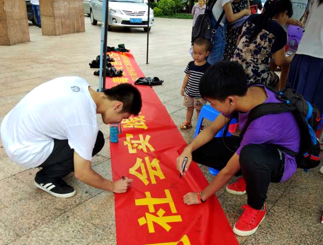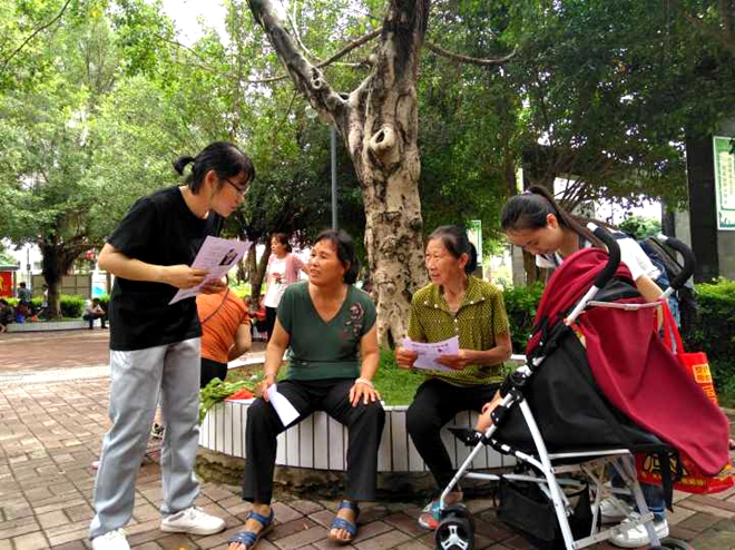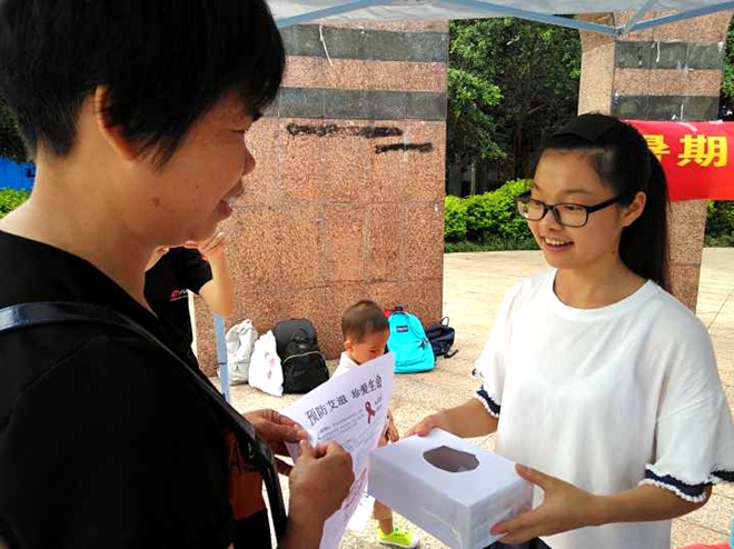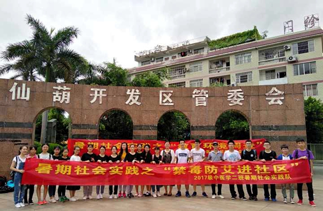 2018年7月15日上午,beat365正版唯一入口必一2017级中医学二班的同学组成禁毒防艾小队在南宁市仙葫经济开发区东方广场顺利开展了暑期社会实践之“禁毒防艾进社区”活动。此次活动以“青春践行十九大,接力奋斗新时代”为主题,活动开展时,更有李晓梅老师莅临现场指导。
