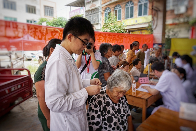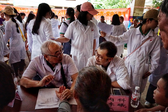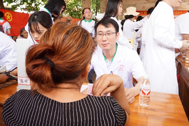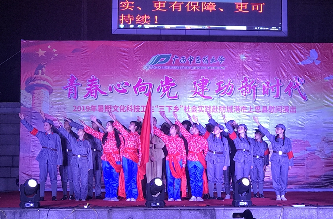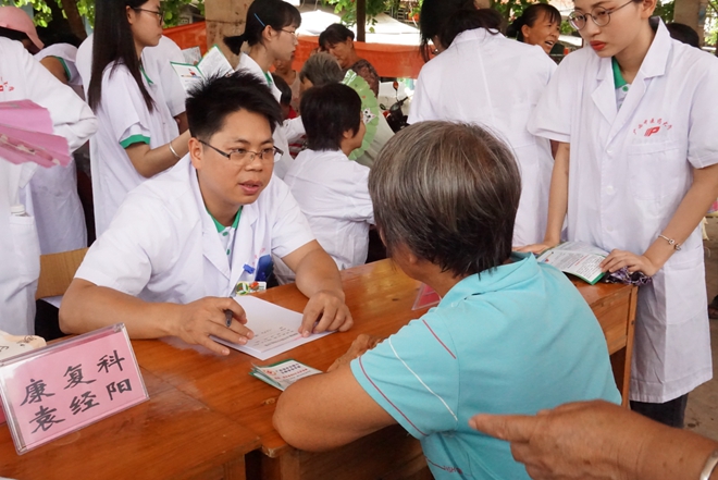2019年7月15日,beat365官网由团学联一行人至防城港思阳镇开展以“青春心向党,建功新时代”为主题的暑期文化科技卫生“三下乡”社会实践活动。本次活动随行的有肖廷刚教授,冼寒梅教授等来自中医一附院、国际壮医医院的7名专家,由校团委副书记(主持工作)杨删带队。