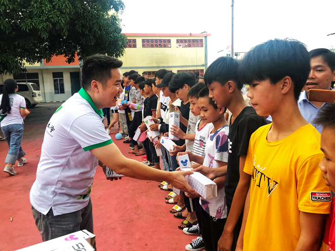 校团委副书记(主持工作)杨删给留守儿童送上生活用品