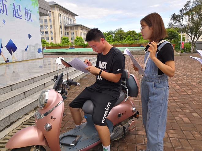 7月4日下午,实践团队分工明确、各司其职,开始于beat365正版唯一入口必一、广西外国语学院、南宁师范大学进行问卷调查,了解“青年大学习”对附近大学生的党团知识学习效果了解程度。队员们热情高涨,积极分发问卷并进行知识宣讲,参与填写问卷的大学生十分配合、支持队员们的工作。