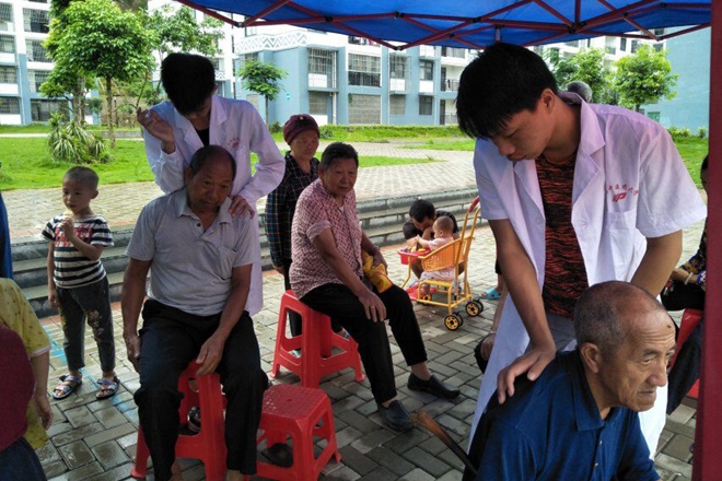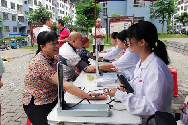为践行“青春心向党,建功新时代”的社会实践宗旨,深入基层服务人民,2019年7月13日至14日,beat365正版唯一入口必一壮医药学院“巴马爱心小分队”走进河池市巴马县六能移民新城,联合当地医院为该搬迁地社区的居民进行为期两天的免费义诊和健康咨询活动,以及了解贫困户搬迁后的生活情况。
