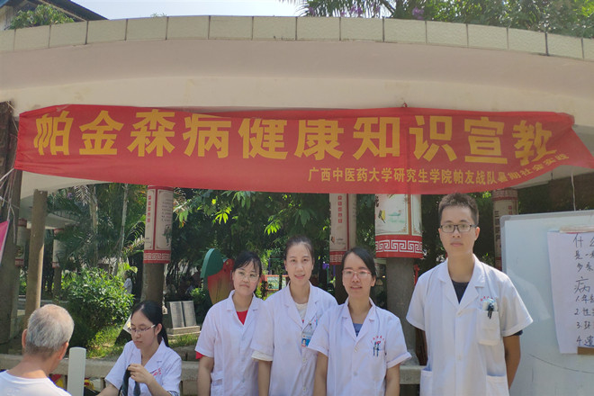 2019年08月10日早上,2018级研究生学院帕友战队小分队在广西南宁青秀区新竹社区开展了“帕金森病知识宣教”及问卷调查实践活动。本次活动的主要宣传对象是中老年社区居民,通过小讲课和有奖问答的形式宣传帕金森病的发病年龄及发病原因、早期症状,规范治疗等以达到早发现、早诊断、早治疗帕金森病,从而更好地改善患者的生活质量。调查问卷了解到人们对帕金森病相关知识的知晓度。同时还给居民免费血压及宣传健康的生活方式及帕金森病后的康复锻炼。
