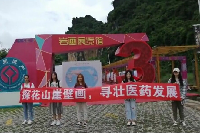 亲历绝美花山崖,探寻壮医药踪迹--探花山崖壁画,寻壮医药发展暑期社会实践团队顺利完成活动