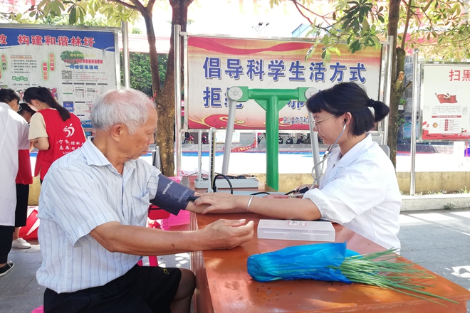 八月,天空透蓝,地面热气熏蒸。正如古人言:“日轮当午凝不去,万国如在洪炉中。”即使是炎炎夏日,红会的小伙伴们也没有停下义诊和推广献血知识的脚步。2019年8月28、29日,beat365官网大学生红十字会在马山县林圩镇开展了2019年暑期社会实践。