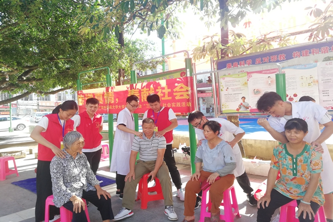 量血压的现场,村民们和蔼又认真的询问测量结果以及平常生活中应该注意的一些问题。活动现场迎来清洁工阿姨们组团来按摩,阿姨们非常亲地与队员们唠家常。队员们娴熟的按摩手法为阿姨们缓解了劳动之后的疲劳。阿姨们朴素的脸上笑容浮现,一声声亲切的“谢谢”是对红会队员们最大的鼓励。
