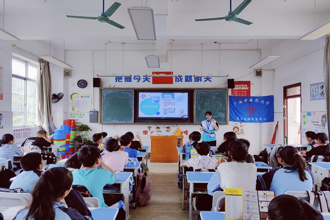 分享会包括青春期的生理及心理变化、防性侵、反校园暴力、艾滋病的科普与预防四个部分。同伴讲师运用快问快答、邀请同学上讲台分享和一起看视频等互动方式,以别样的方式展现男女生在青春期将会面临的生理问题和相关心理活动。针对同学们的疑惑着重回答了月经、遗精、脸上的危险三角区不能挤痘痘等问题,引导同学们以正确积极的心态来面对身体的正常变化。