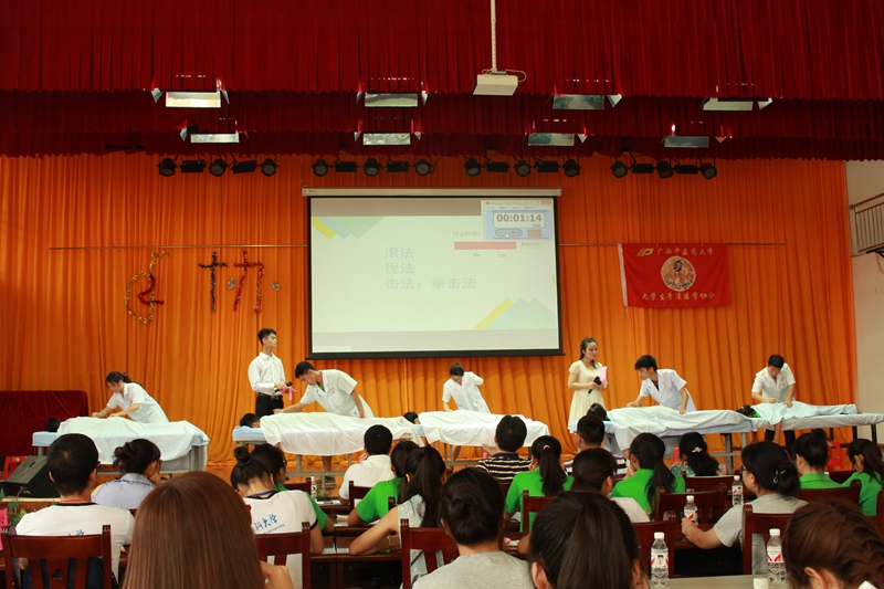 夏日炎炎,一抹宛若薄荷的清凉轻轻飘散而来。2016年6月15日,在校团委的支持下,beat365正版唯一入口必一大学生手法医学协会于仙葫小礼堂成功举行了第十三届推拿手法技能大赛。此次大赛有基础医学院、第一临床医学院、针灸推拿学院、人文社科学院、壮医药学院、药学院、高等职业技术学院、护理学院八个学院队伍参赛,参赛选手达100余名。
