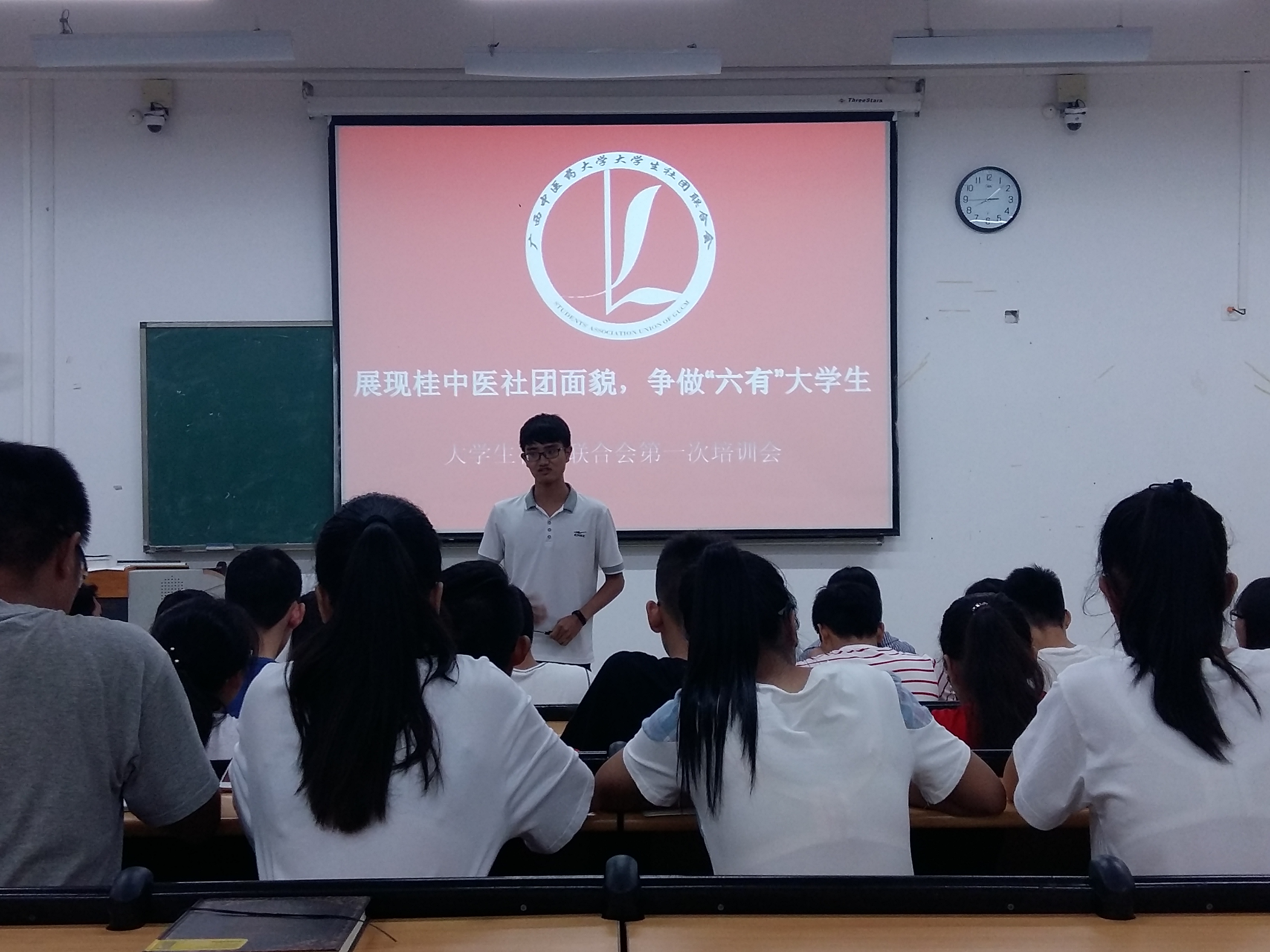 为学习贯彻习近平总书记重要讲话精神及积极响应总书记提出的“做有理想,有追求,有担当,有作为,有品质,有修养的大学生”的号召,在beat365官网仙葫校区,以手法医学协会、大学生红十字会、青年志愿者协会、青年同伴教育中心等为代表的各学生社团于2016年9月中旬至2016年10月底先后召开以“展现桂中医社团面貌,争做'六有'大学生”为主题的动员大会,最后由大学生社团联合会(以下简称社联)于2016年10月23日晚召开主题培训会议作为此次主题活动的终点站来进行宣传和教育。