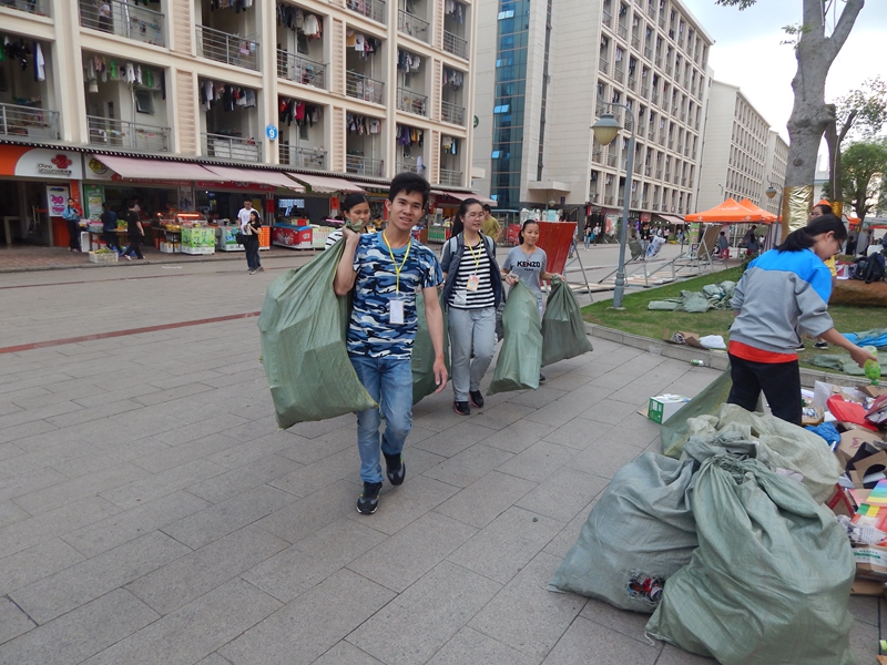 活动当天下午17:00,全体人员穿上整洁的会服,佩戴青协的会牌,兴高采烈的来到五和食堂旁边集合,负责人根据到场人数进行分组。活动过程中,志愿者耐心的敲响每一扇爱心之门,回收每一份爱心。人们都说团结就是力量,志愿者们团结一致,默契配合,走访宿舍回收活动很快就结束了。志愿者们迅速地把回收的废品拿到指定的地点汇合并进行分类整理。也许太过于投入工作,不知不觉天色已暗,志愿者们细心地将废品分好了类并装好车。最后以大家面带笑容的拍下大合照为此次活动画上圆满句号。本次蓝天爱心宿舍募集资总计423.3元。