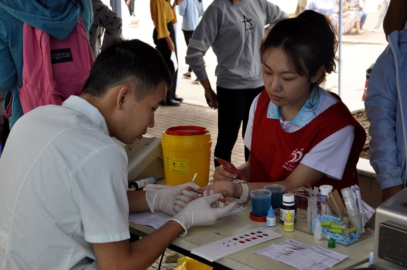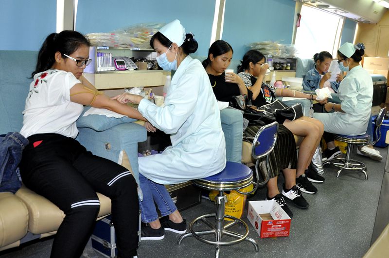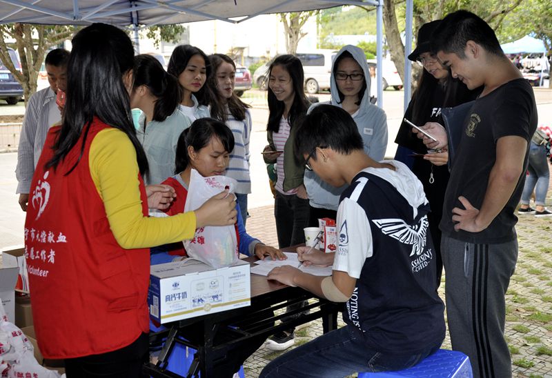 血车上午10点进校后,短短时间内,同学们在献血点排起了长队,在医生和志愿者的指导下,同学们开始为献血做好准备。等待献血期间,同学们紧张而兴奋,其中不乏参加过好几次献血活动的人,但他们仍旧为自己的行动而感到自豪。在宣传游园活动中,校红会志愿者耐心的给同学们解疑答惑,让同学们更了解献血的相关知识及意义所在。