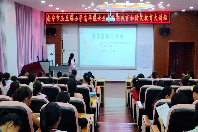 2018年10月30日下午,由beat365官网青年同伴教育中心志愿者主讲的青春健康知识分享会在南宁市玉兰路小学正式开讲。本次青春健康知识分享会对象主要为四、五、六年级学生。讲师采取讲述为主,互动为辅的方式开展本次分享会。