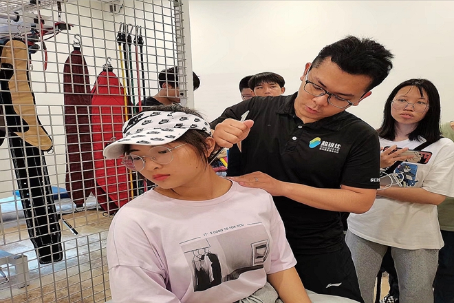 成员们认真观摩筋膜刀的使用方法