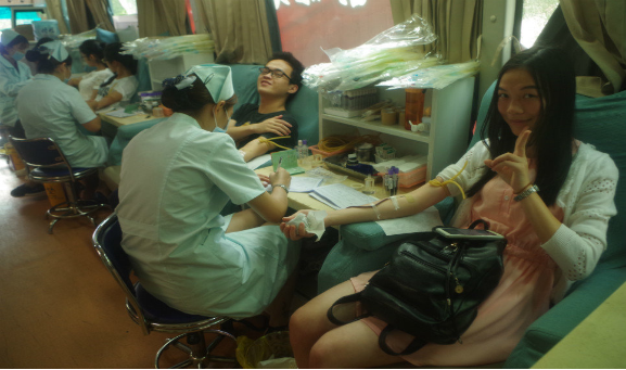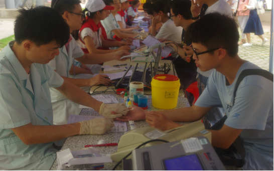 上午九点,献血现场几顶简易帐篷下,校红会成员协助南宁中心血站医务人员对献血者进行一系列的相关检测,学院的师生也非常积极地报名,响应此次活动的倡议,男生表现得勇敢,女生表现得淡定,他们的脸上都绽放出温馨的笑容,因为他们知道身体中流淌的不仅是血液,还有富有能量的一股爱心暖流。校红会队员各司其职,帮助血站医务人员处理各个方面的事情,为这次志愿活动奉献出自己的一份力量。