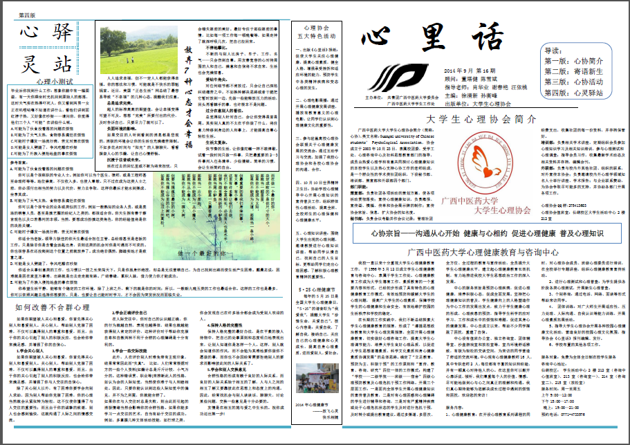 心理协会简介 发布时间:2015-11-20 20:37:33 浏览次数: 次 【字体:小 大】 beat365正版唯一入口必一大学生心理协会,是由热爱心理学和有意共同探讨心理健康知识的本校学生以及热心支持心协工作的老师组成,是一个群众性的学术类社团组织。心理协会的指导老师是beat365官网心理健康教育与咨询中心的谢春艳教授和汪依桃老师。 分享到: 【打印正文】
