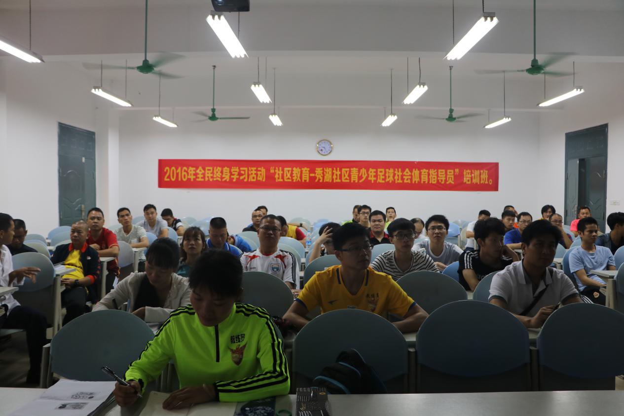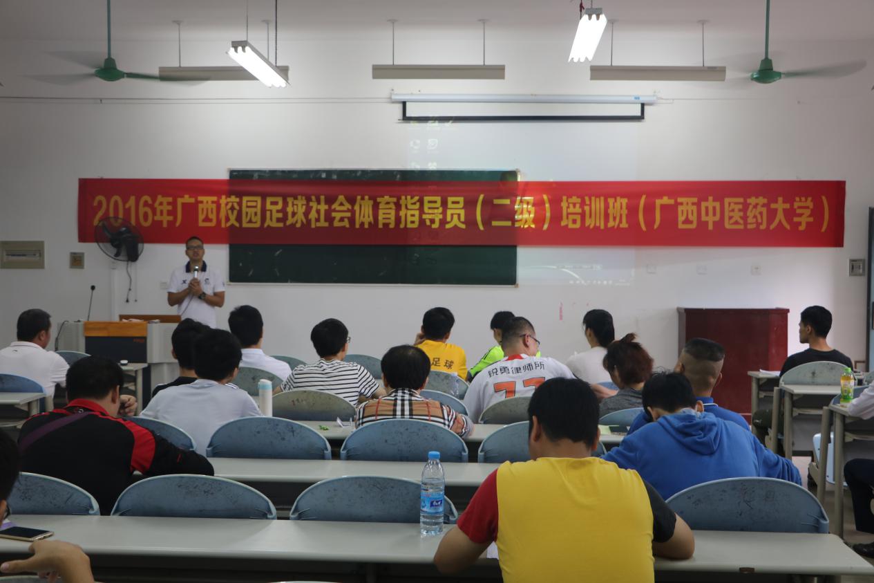 广西校园足球社会体育指导员培训班11月19日在beat365官网明秀校区举办。自2013年起,由beat365官网直属党委体育部支部与南宁市西乡塘区秀湖社区党委联袂创办的全民健身卫生站点就在beat365官网明秀校区全面铺开。本次培训班的举办,是站点工作由量的堆砌到质的拓展、服务质量全面提升的重要标志。