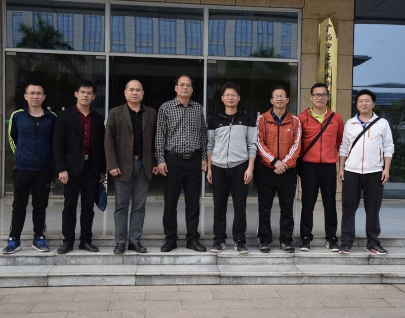 李荣源对覃林一行的到来表示欢迎,介绍了学校、体育部的基本情况以及我部与会人员——部门副主任石荣群、办公室主任吴国天、学生体质健康监控中心主任韦金亮、运动康复教研室副主任王庆博。