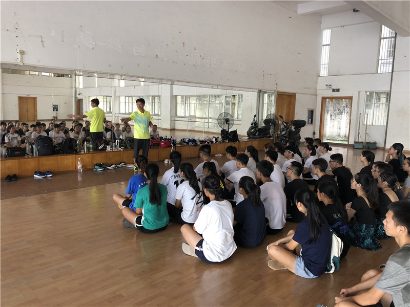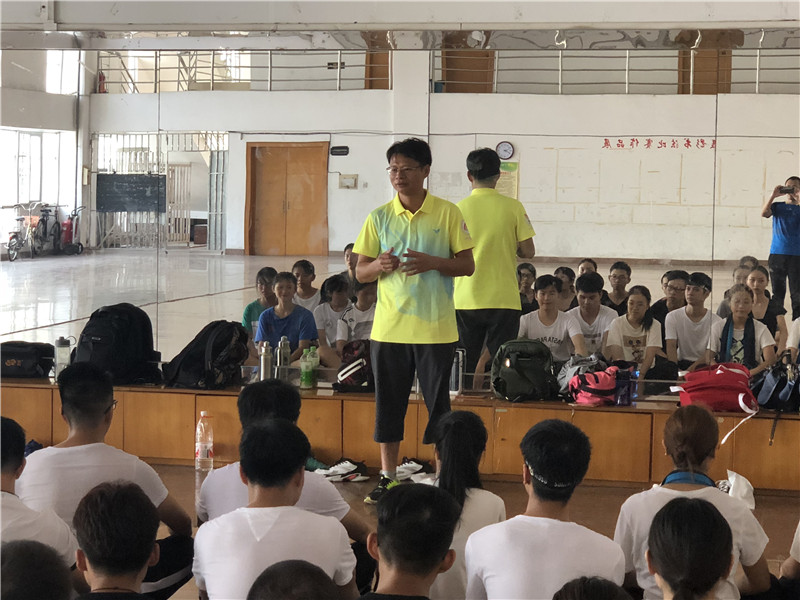 2018年8月10日,体育部主任李荣源、副主任石荣群来到明秀校区体育馆,亲切看望了暑期留校刻苦训练的各代表队运动员和教练员。
