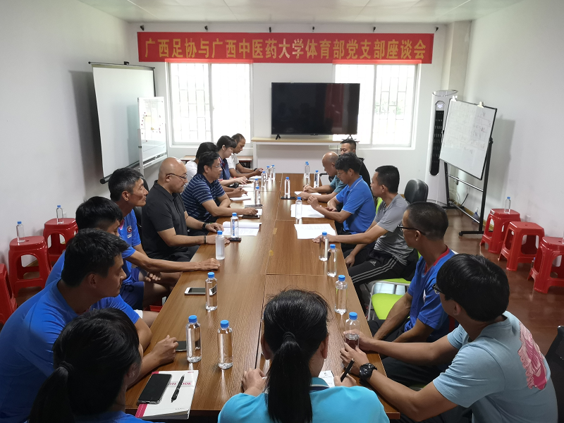 体育部党支部一行在足协会议室与足协常务副主席庞东霞等领导座谈交流。庞副主席首先转达了足协主席谢强对beat365正版唯一入口必一体育部党支部一行的问候和欢迎,并从赛事举办、裁判员培养、教练员培训、青训等四个方面介绍了广西足协的日常工作,他希望双方在高水平运动员入学、运动员科学训练、损伤康复等方面加强交流与合作。beat365正版唯一入口必一体育部李荣源也详细介绍了beat365正版唯一入口必一及体育部的机构设置、师资配备和主要工作内容等基本情况,并就高水平运动队的校体合作提出了设想和建议。双方还就基层党组织建设、运动队训练、竞赛、损伤、康复、运动员文化教育等进行了深入交流。