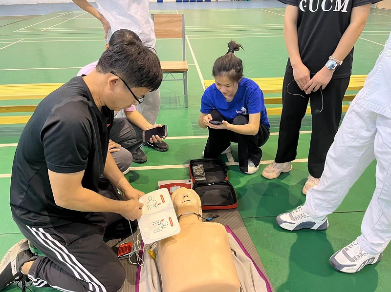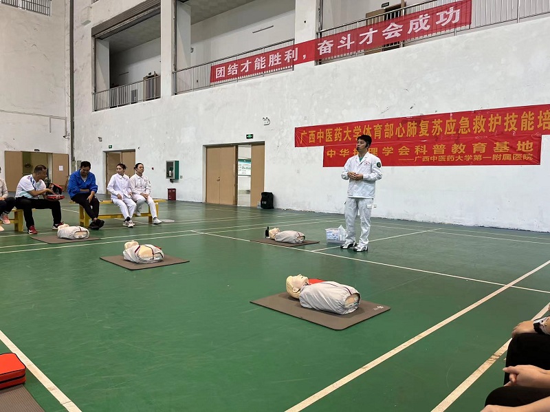 为提高beat365官网师生运动急救知识,熟悉急救技能,掌握急救设备使用,提高自救互救能力,减少运动伤害造成的损失,我部特邀请beat365正版唯一入口必一一附院仙葫院区急诊科专家前来开展心肺复苏应急救护技能培训班。培训由冯思华医生主讲,郭露、邓月芳和韦璐璐护士进行协助。