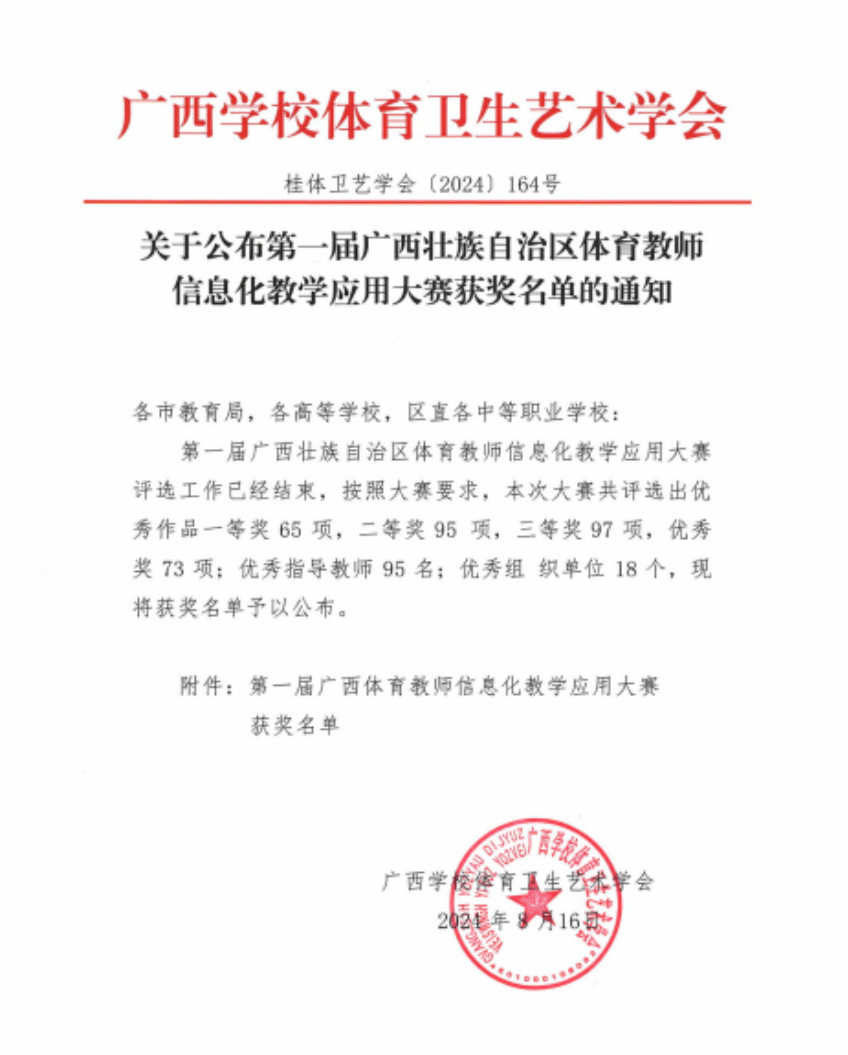 beat365官网教师在第一届广西壮族自治区体育教师信息化教学应用大赛中荣获佳绩