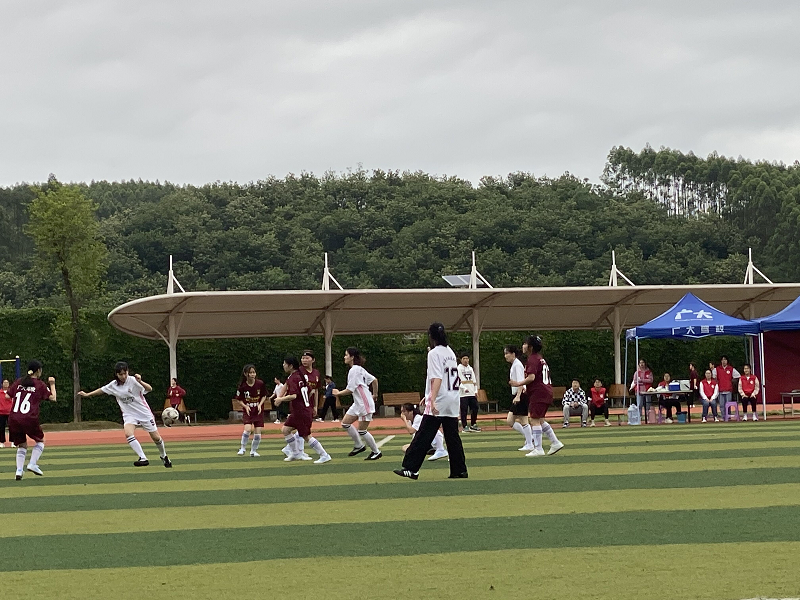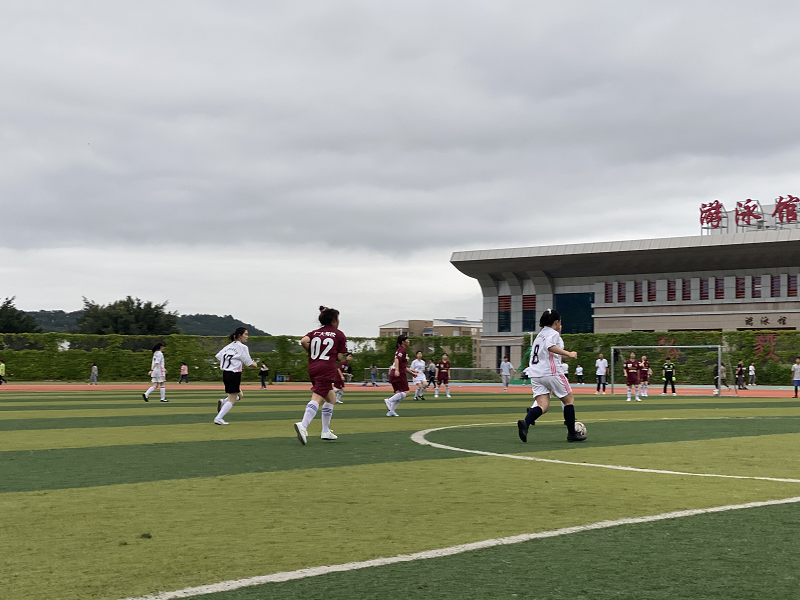 下午五点,高等职业技术学院与公共卫生与管理学院女足比赛准时开始,双方队员入场合照,加油鼓气,分散站位,裁判一声哨响,比赛拉开帷幕。