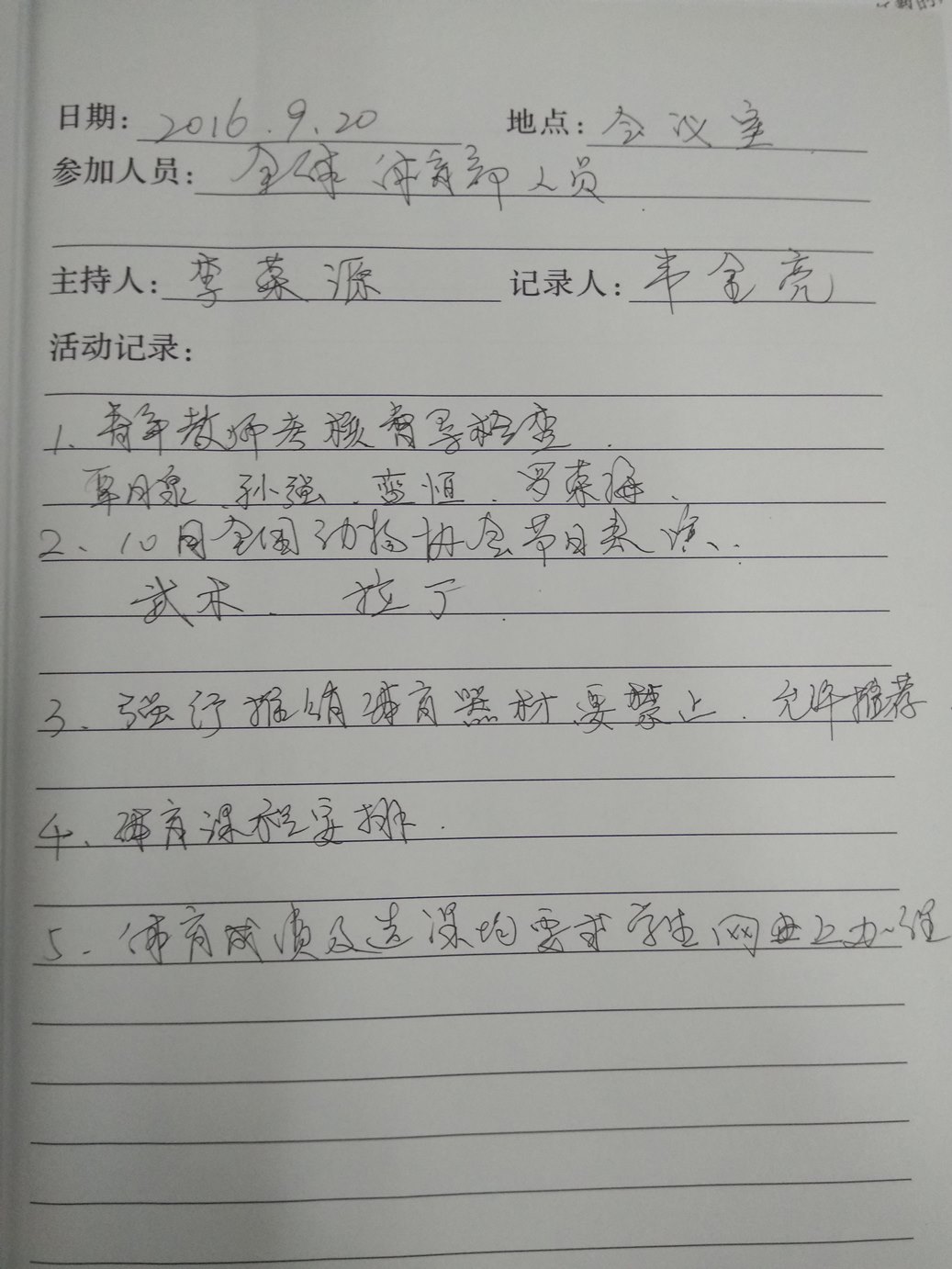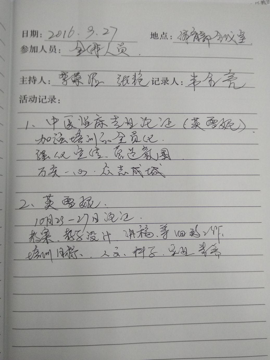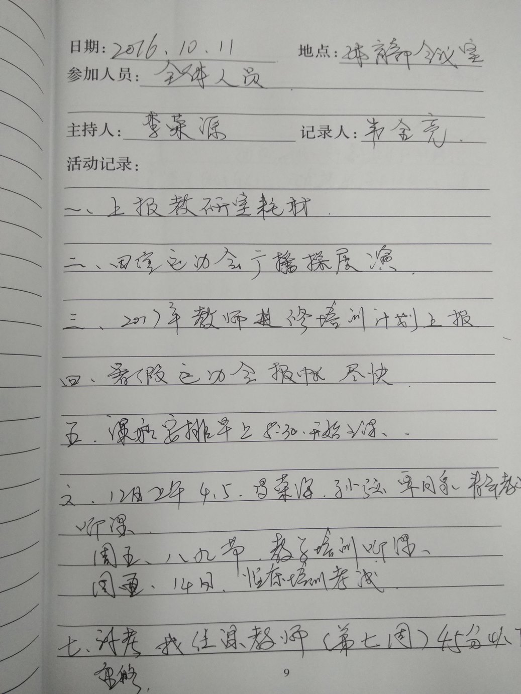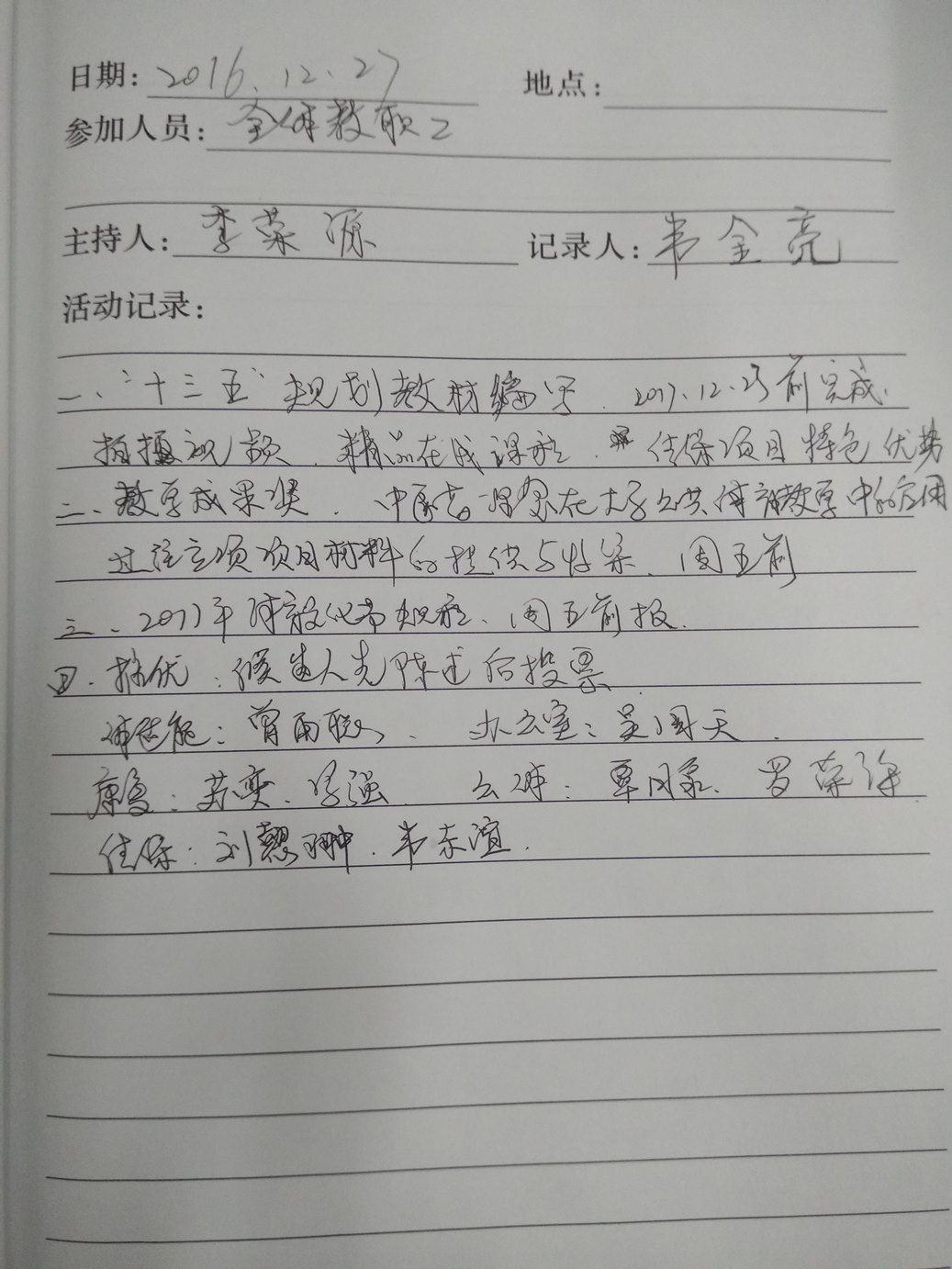 2016-2017学年第一学期教研室活动记录