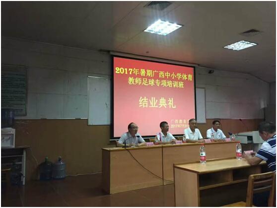 2017年7月23-8月8日李荣源老师参加2017年暑假广西中小学体育教师足球培训班并为学员们做了题为“足球运动中的安全防控与急救” 发布时间:2017-10-05 10:59:07 浏览次数: 次 【字体:小 大】 分享到: 【打印正文】