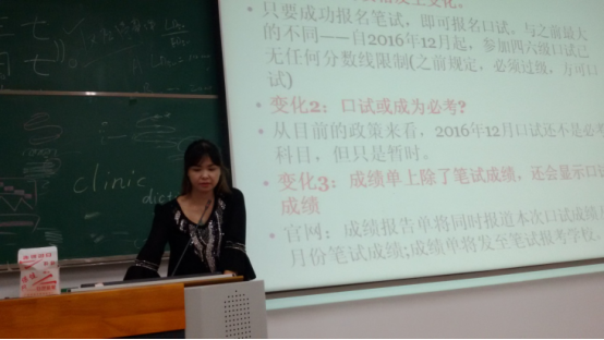 王武杰老师、葛雯雯老师首先对新生入学表示了祝贺,他们以“如何从中学英语学习向大学英语学习转型”为主要内容,向大学新生们讲解了大学生学英语的目的、大学英语学习与中学英语学习的差别、beat365官网的英语教学情况与问题的介绍、大学生如何应对英语学习以及大学阶段如何准备四、六级考试等。本次讲座在新生中引起了热烈的反响,引起了新生对大学英语学习的重视,并帮助他们完成从中学英语学习到大学英语学习的过渡。