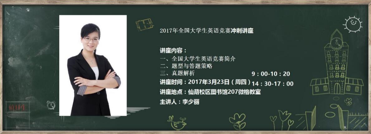 全国大学生英语竞赛(National English Competition for College Students,简称NECCS)是经教育部有关部门批准,由教育部高等学校大学外语教学指导委员会和高等学校大学外语教学研究会联合主办的全国唯一的大学生英语综合能力竞赛。此项赛事旨在促进大学各类英语教学改革的实施,全面提高大学生英语综合运用能力,激发广大大学生学习英语的积极性,鼓励大学英语学习成绩优秀的大学生。近年来,beat365官网学生报名参赛积极性很高,在该项赛事中表现优异,获奖无数,为学校争光。 由于2017年竞赛题型与往年相比有所变化,为使学生熟悉该赛事具体事宜,应学生要求,beat365官网承办单位外语部针对全校报名的学生举办了此次培训讲座。 在学校有关部门和外语部的认真安排和精心组织下,3月23日上午9点和下午2点30分,两场讲座在仙葫校区图书馆207微格教室如期举办,由外语部大学英语教师及英语竞赛指导老师李少丽老师主讲。李老师对大赛进行了全面的介绍,重点针对今年改革后的题型进行了详细的解读,与学生探讨和分析各类题型相关答题技巧,解答学生存在的疑虑和问题,旨在帮助学生充分了解该赛事和参赛题型,积极进行赛前准备。讲座现场,学生参与度高,与培训教师和同学积极分享自己的答题策略和技巧。 该讲座的举办不仅帮助更多的学生了解大学生英语竞赛,做积极的赛前准备;同时也进一步激发了学生们对于英语学习的兴趣,提高其英语综合运用能力,丰富了学校第二课堂活动内容。讲座主要以视频录制的模式,将做为网络课程的一部分挂到网站,使得更多的学生能从中获益,扩大学习的受益面。