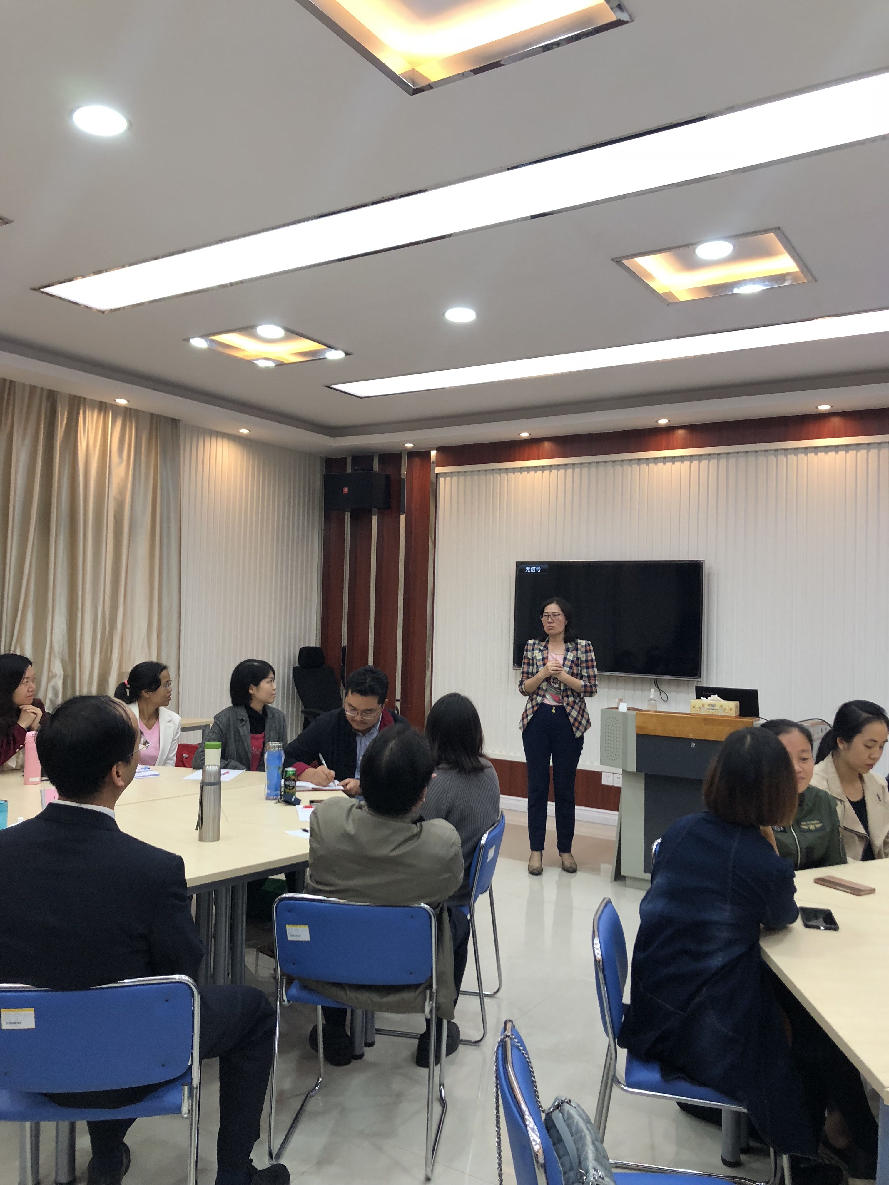 学校领导对此次经验交流会十分重视,冷静副校长及教务处唐梅文处长出席本次会议。何严老师事先也做了充分的准备,精心制作了PPT演示稿。在讲座过程中她详细介绍了比赛宗旨、报名方式和比赛流程,重点讲述了自己在准备阶段和参赛过程中的心得体会,反思自身的教学基本功及人文素养的进一步提高;并强调校级比赛作为参赛基础及团队培养的重要性;此外,何老师也提出通过本次参赛,了解到了目前全国大学英语教学改革的新方向,鼓励外语部老师们结合自身教学特点开展教学新思路。