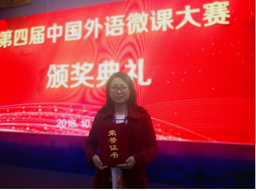 祝贺我部仝慧茹老师荣获第四届中国外语微课大赛全国优秀奖