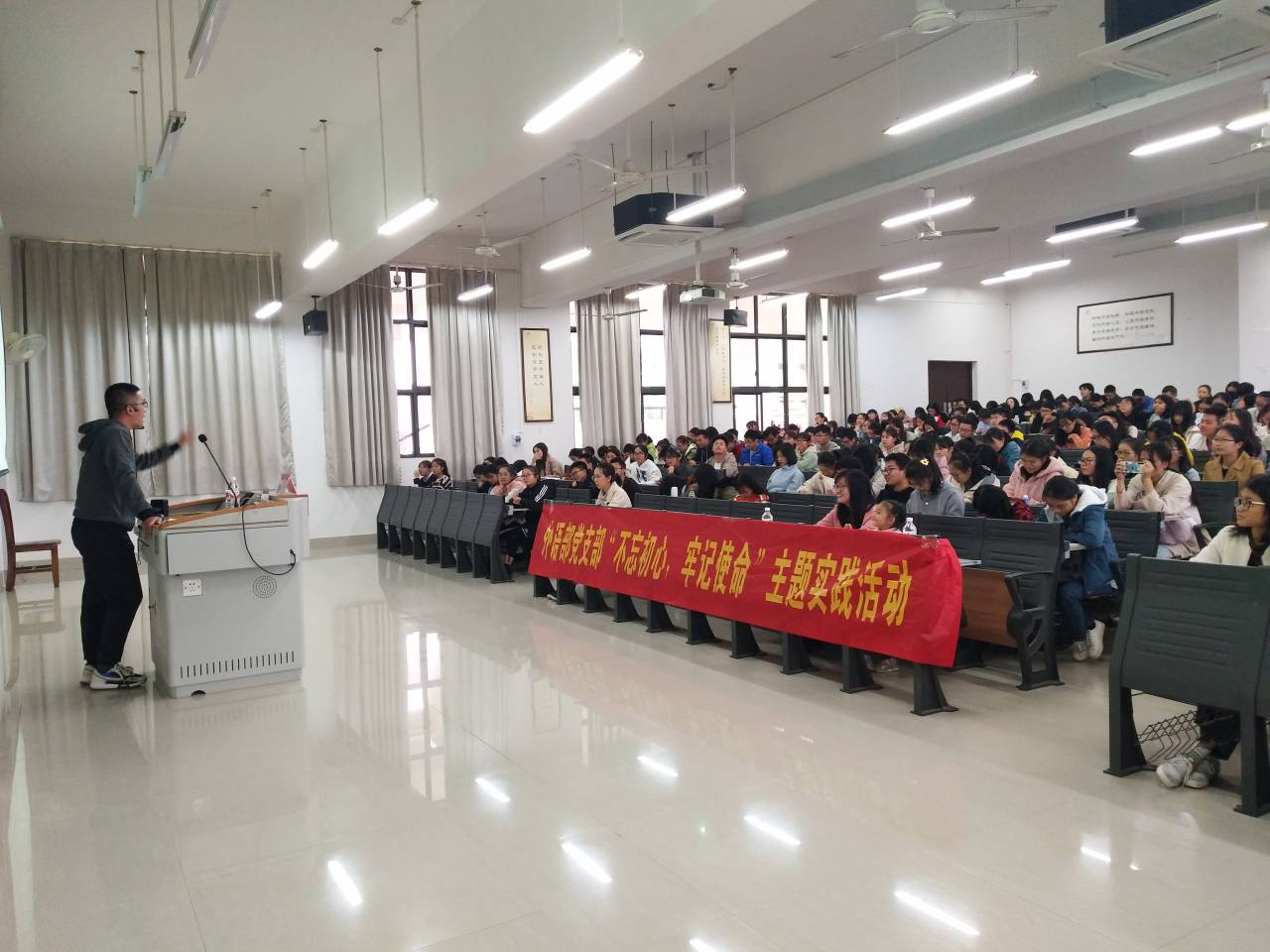 为进一步推动“不忘初心、牢记使命”主题教育开展和落实,贯彻beat365官网“以学生为中心”教育理念,2019年11月30日,外语部与学校英语协会在仙葫校区1-201教室联合举办“大学英语四级复习方法与应试策略”专场讲座,讲座吸引近300名学生参加。。