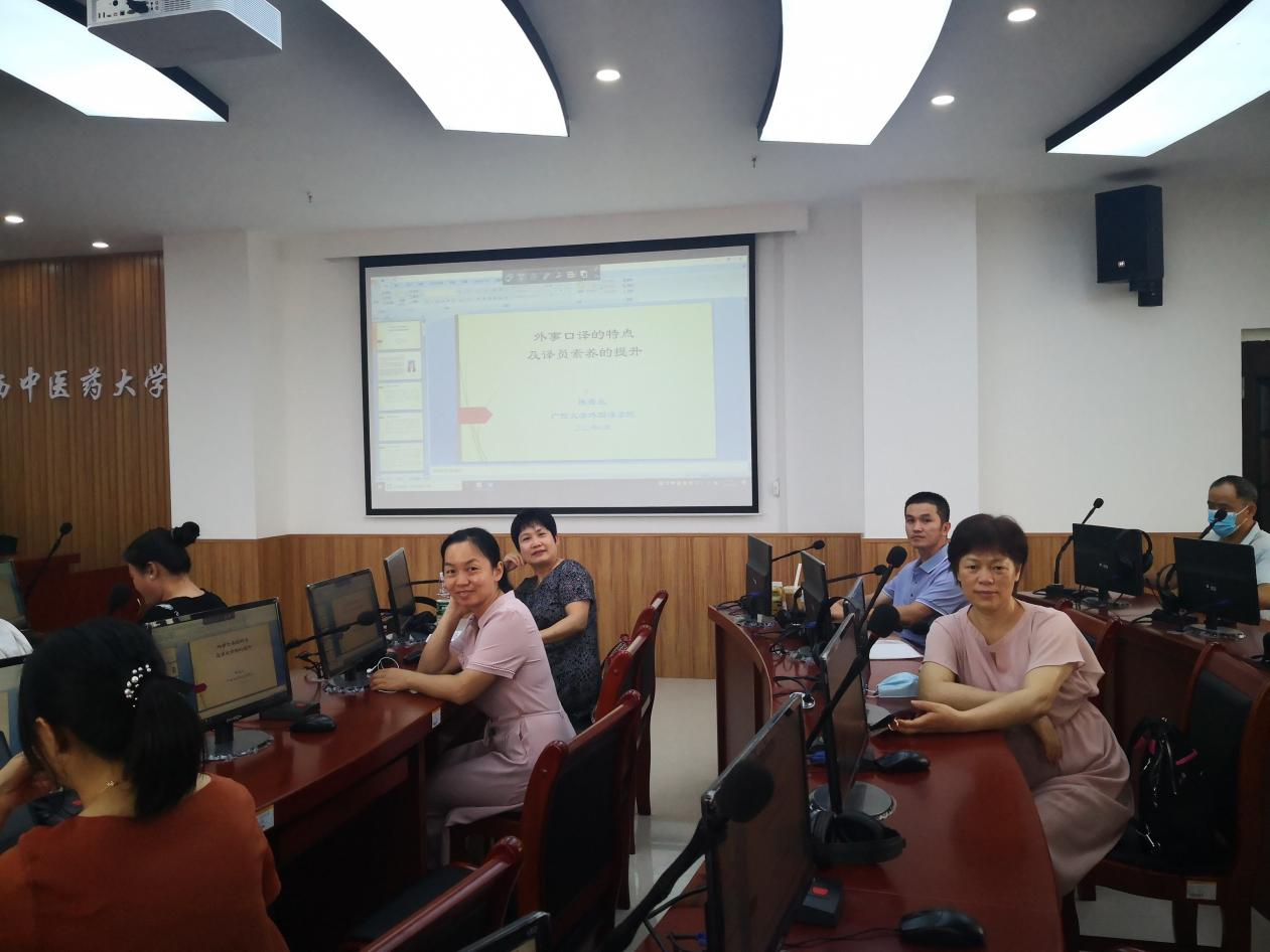 盛夏临近,生机勃勃的校园里学习氛围热烈高涨。为了提升广大师生对外交流和传播中医的能力,6月14日上午,外语部邀请了广西大学外国语学院副院长陈碧兰博士来beat365官网进行了主题为“外事外交口译的特征及译员素养的提升”的讲座。大学英语教研室(二)的老师全部参加了此次讲座。